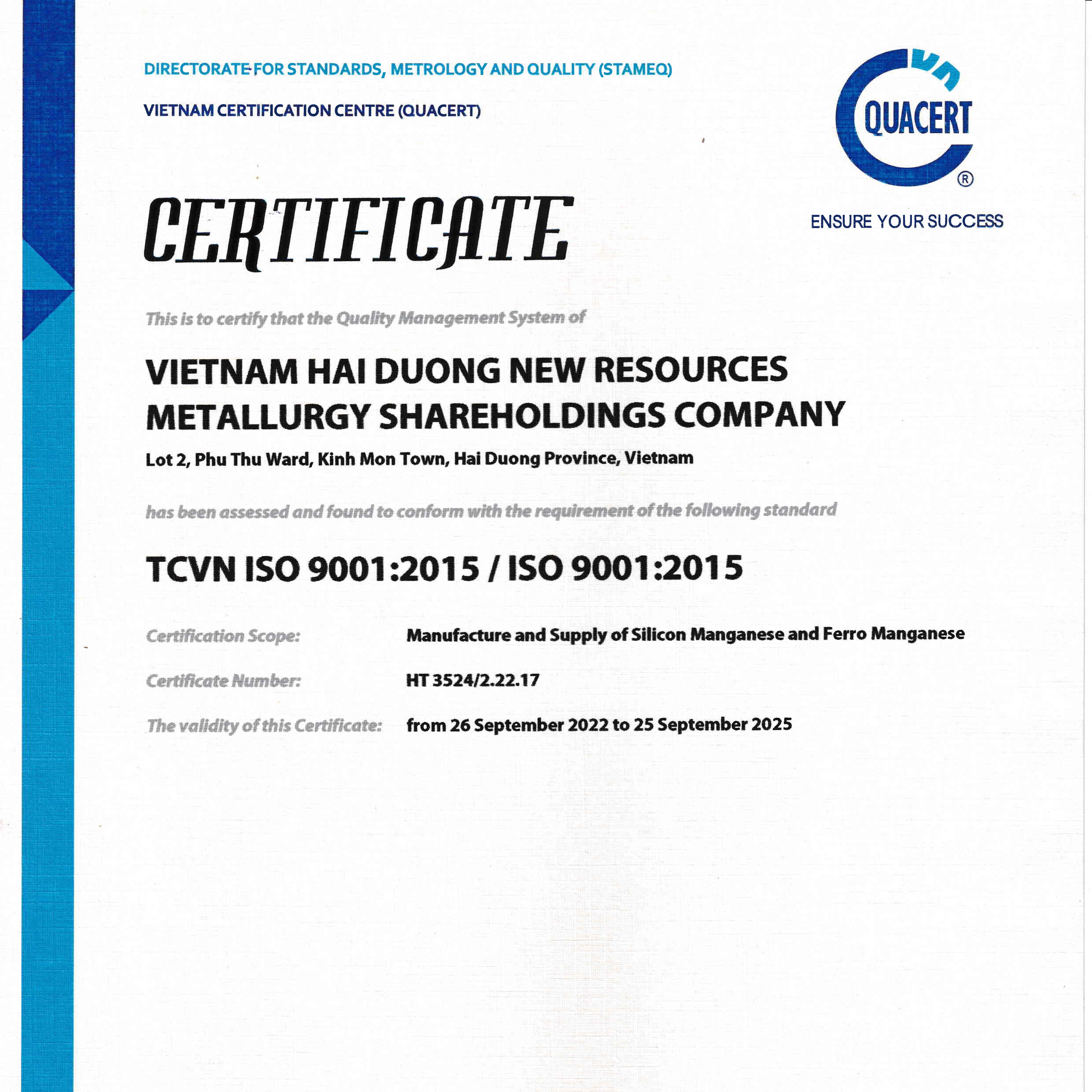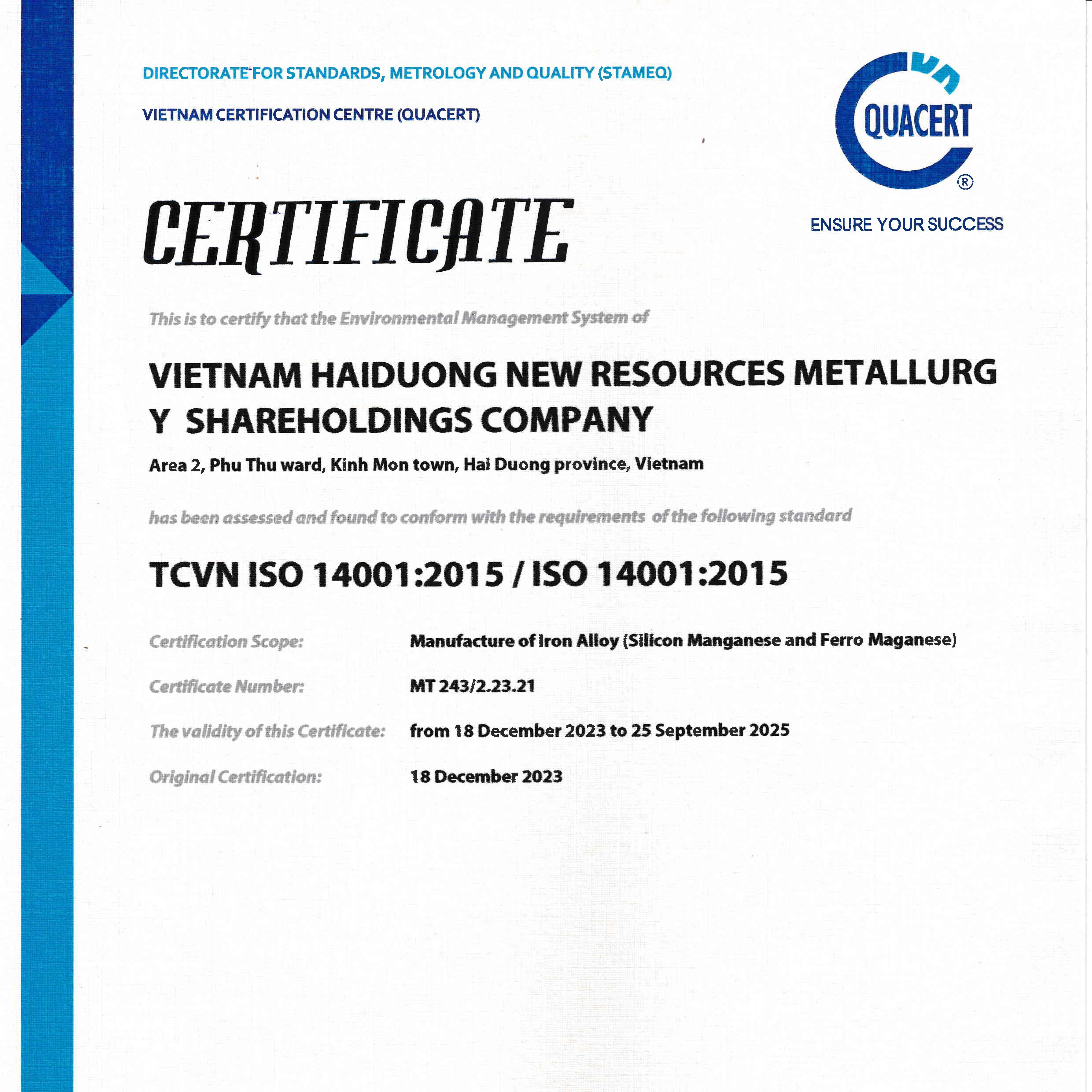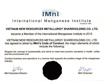 In 2015, we joined the International Manganese Institute (IMnI). In 2020, we became a member of its standing committee in China.